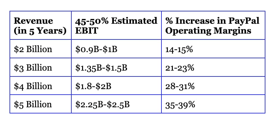 These estimates assume zero growth in the rest of PayPal’s business. They’re purely additive.