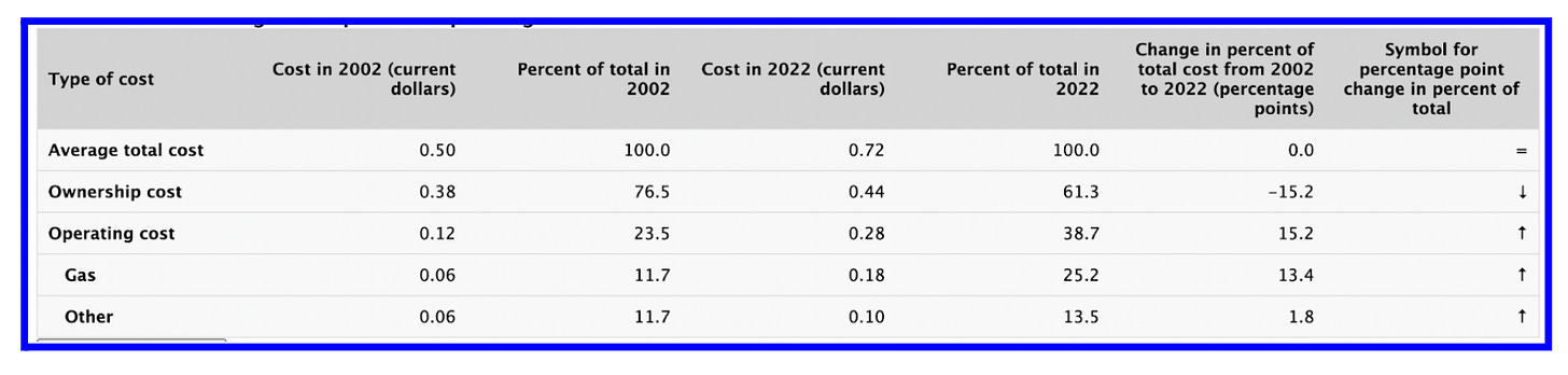 FSD isn’t free. At ~$99/mo, that adds (8c/mile if 15000 annual miles driven). But with robotaxis, miles driven would almost certainly go up. Let’s say it goes up 30%, then cost per mile = 6c